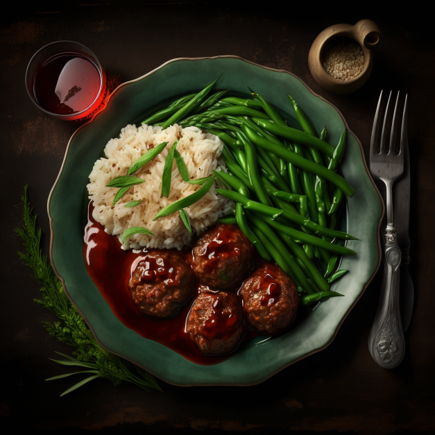 Hickory smoked BBQ sauce on beef meatballs, green beans, and rice is a satisfying dish that's perfect for anyone who loves bold flavours. This dish features juicy beef meatballs coated in a rich, smokey BBQ sauce that adds a deliciously sweet and tangy element. The green beans provide a nice crunch and a healthy dose of vitamins and fibre. The fluffy rice is the perfect neutral base for the bold flavours of the meatballs and sauce to shine.