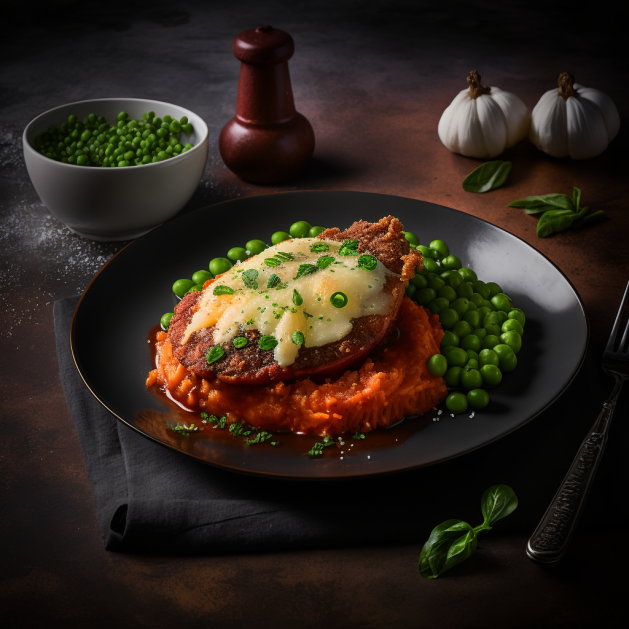 A touch of melted cheese on top creates a golden, bubbling finish, adding a layer of indulgence to every forkful. The final sprinkle of bright green peas provides a burst of color and a subtle sweetness that balances the creaminess of the sauce and the savory notes of the chicken and mushrooms.
