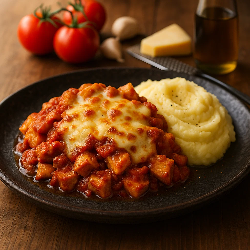 Naked parmigiana is a mouth-watering dish that's sure to satisfy your cravings for a hearty and comforting meal. This dish features succulent diced chicken breast that has been lightly seasoned and coated in our signature Napoli sauce, which is made with ripe, juicy tomatoes, fragrant herbs, and a touch of garlic.